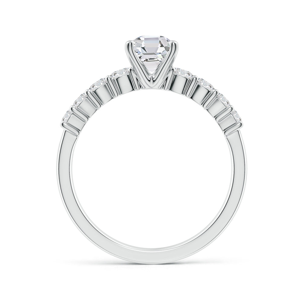 An Asscher diamond offers timeless Art Deco elegance with a bold, square outline. It may face up a touch smaller than a round of the same carat, but smart proportions, a slim band, or a halo enhance presence while preserving that refined step-cut look.