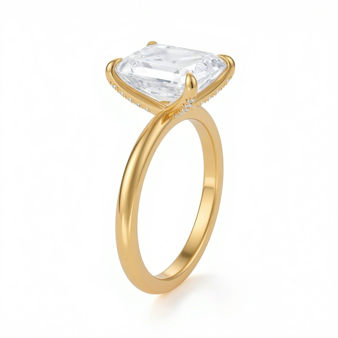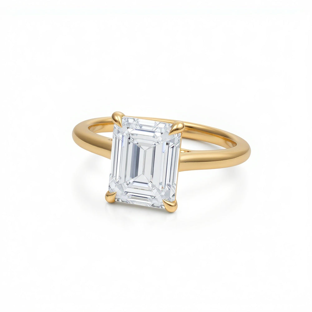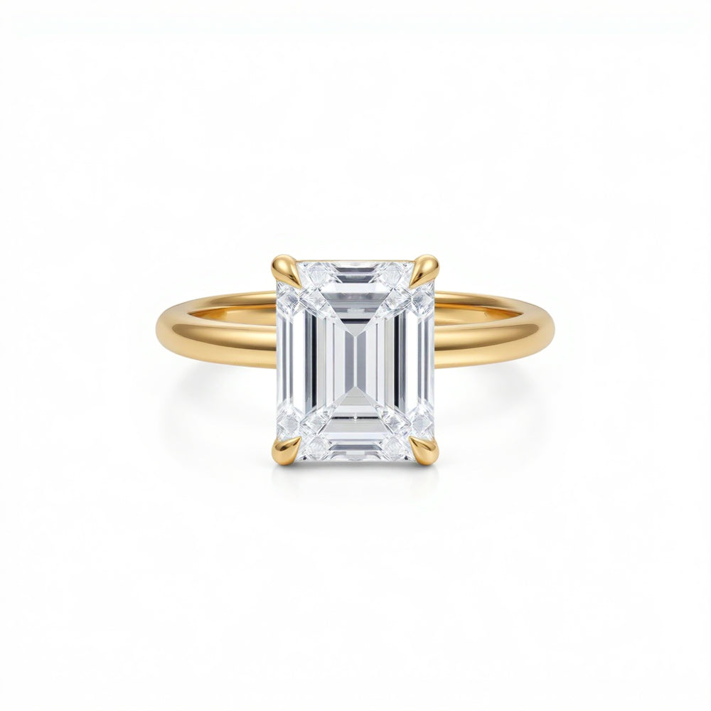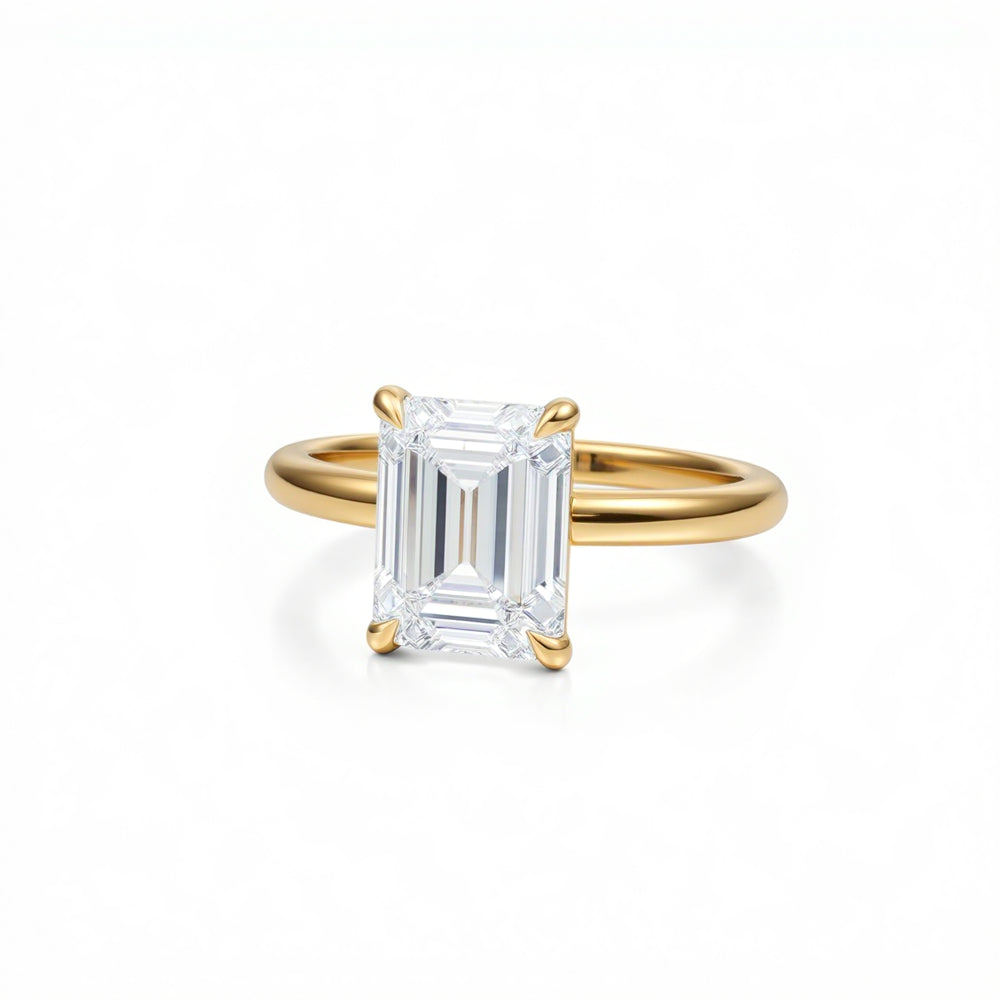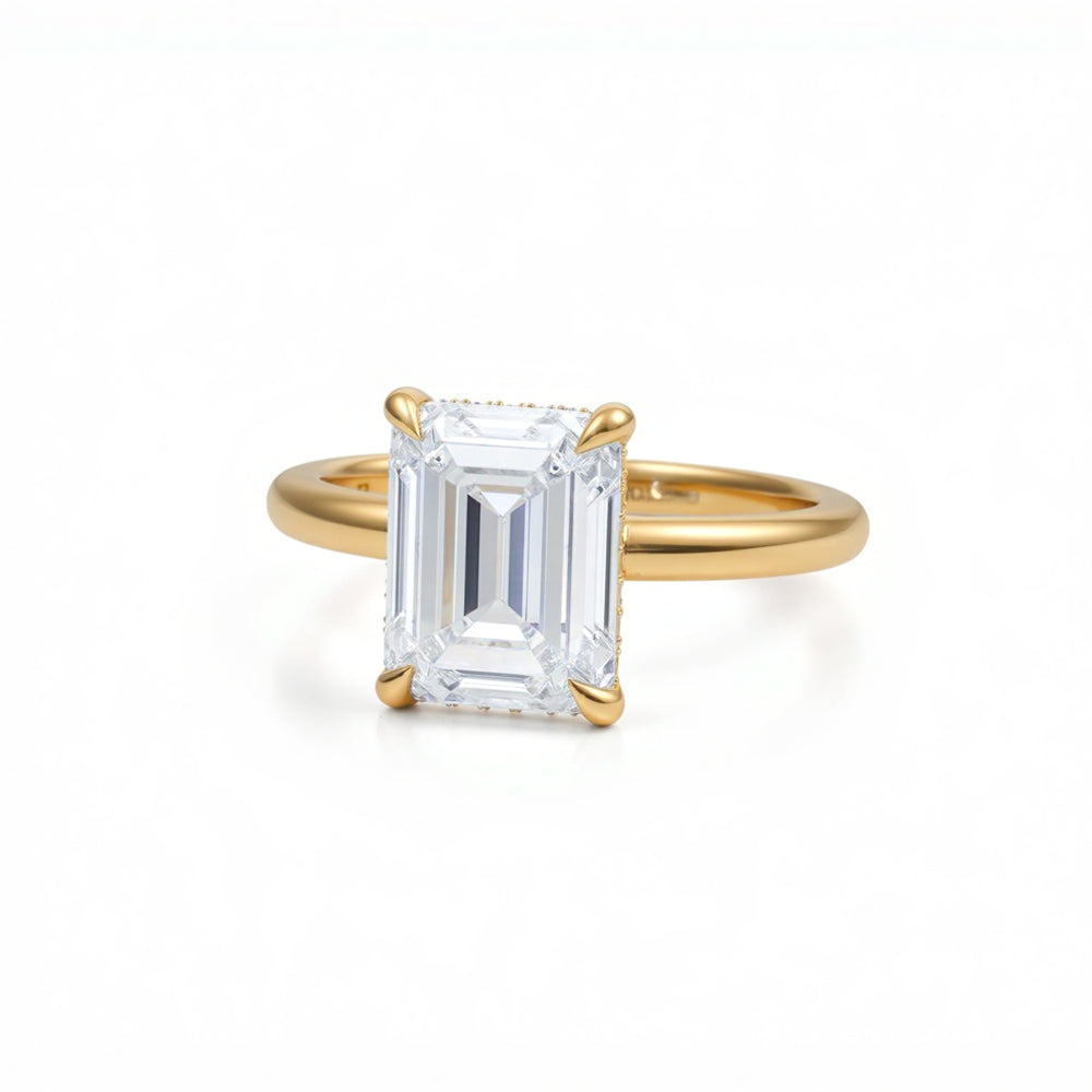 Among the most-loved pieces in our collection is the emerald cut engagement ring. Elegant and architectural, its step-cut facets create refined “hall-of-mirrors” flashes with a sleek, elongated silhouette.
