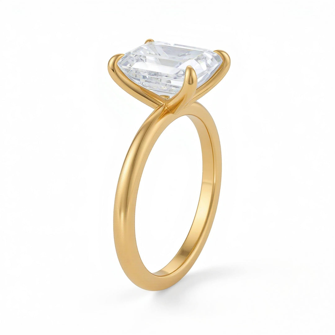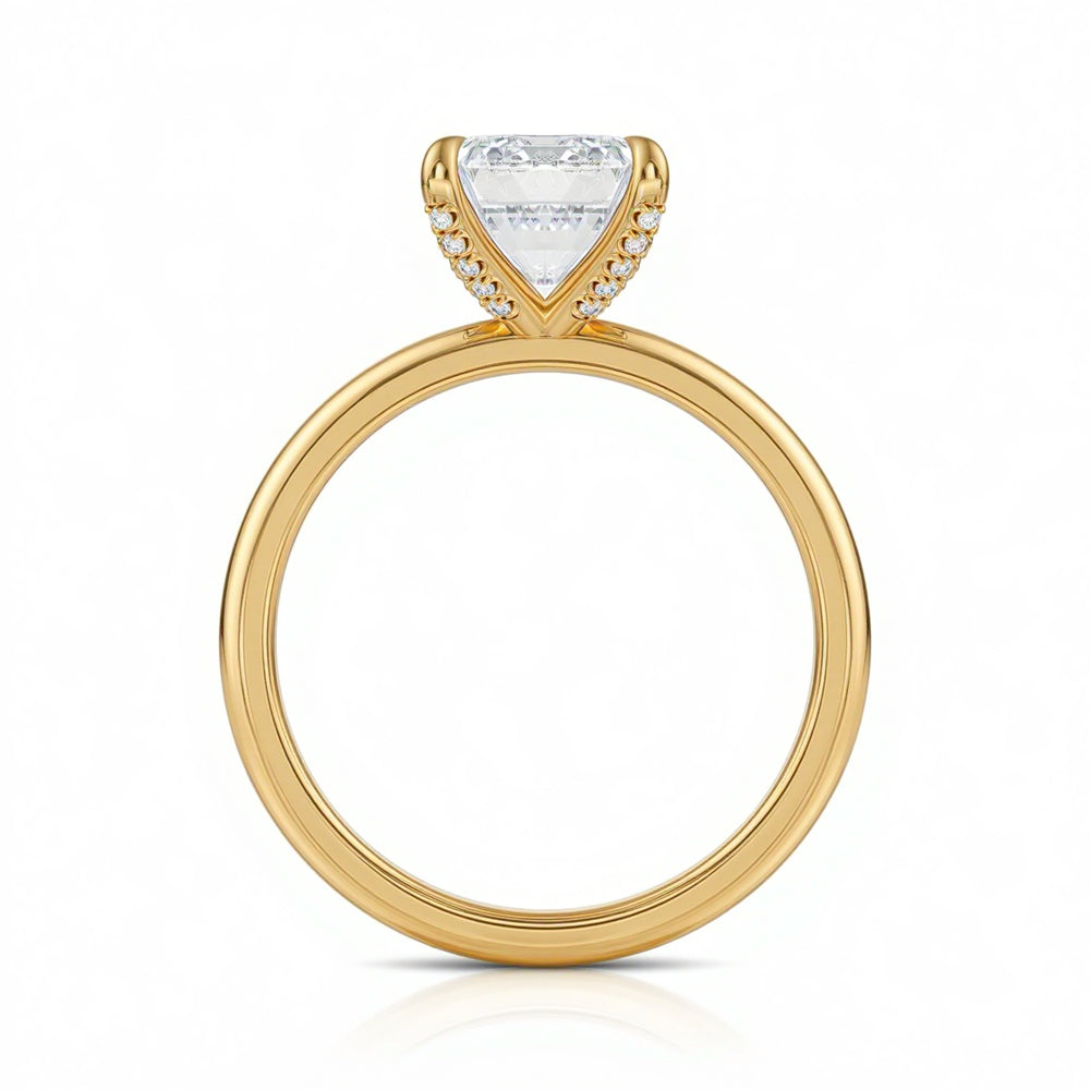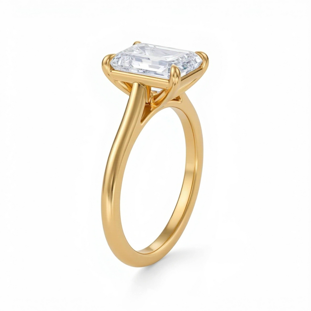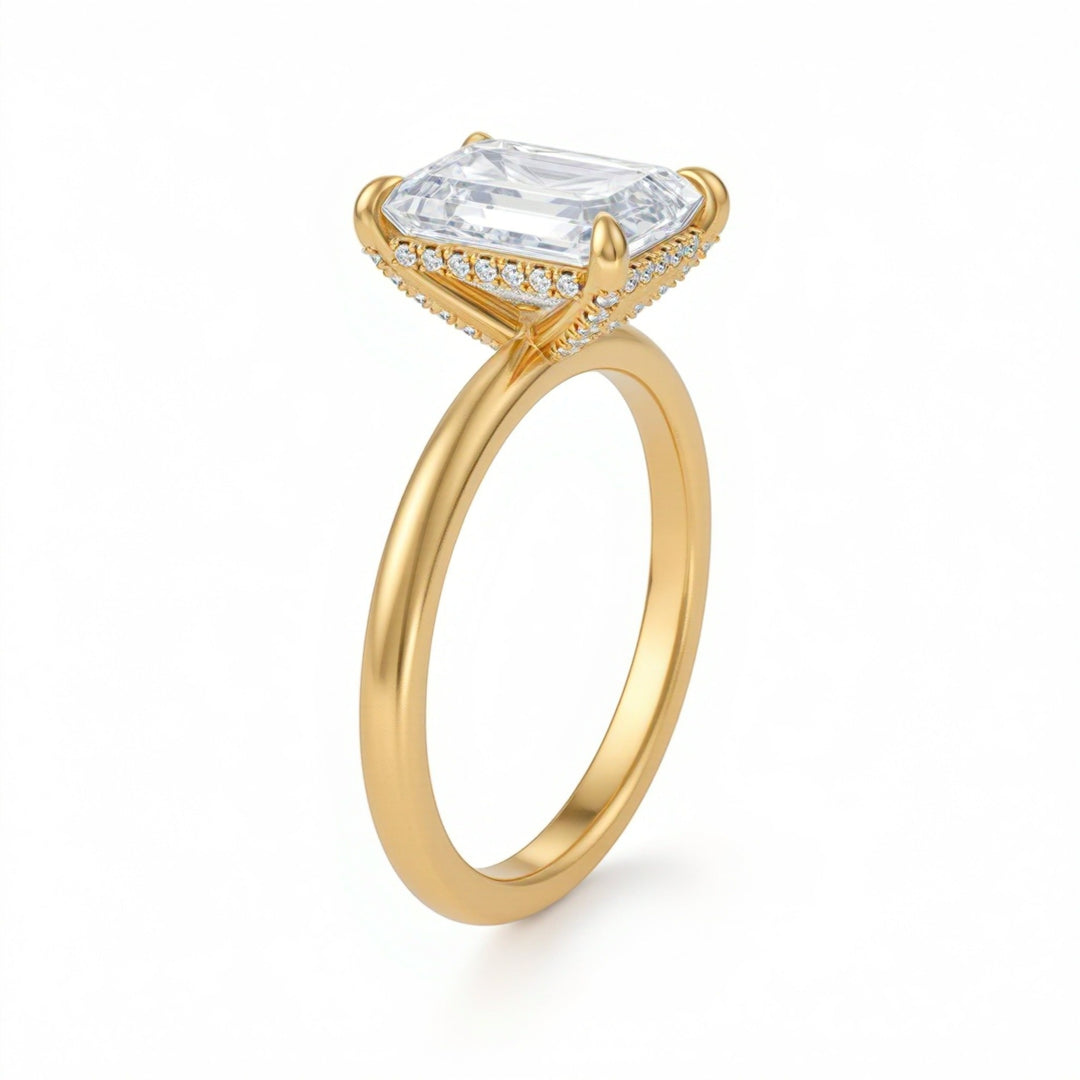 Among the most-loved pieces in our collection is the emerald cut engagement ring. Elegant and architectural, its step-cut facets create refined “hall-of-mirrors” flashes with a sleek, elongated silhouette.