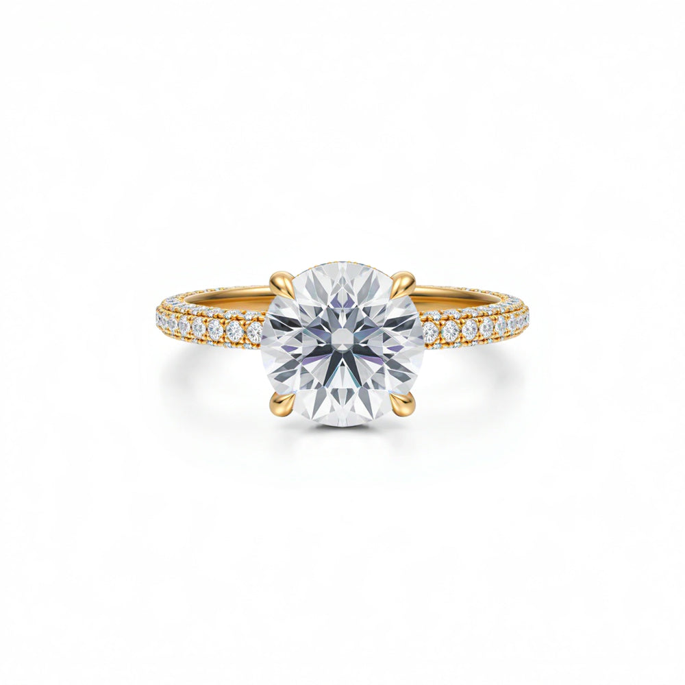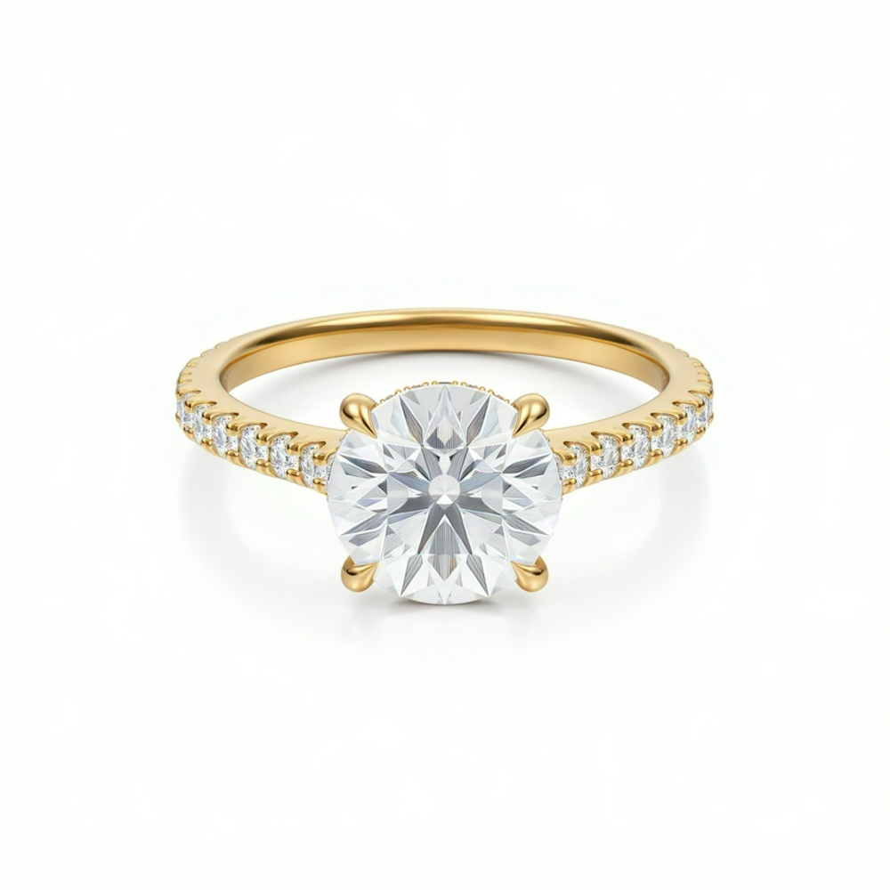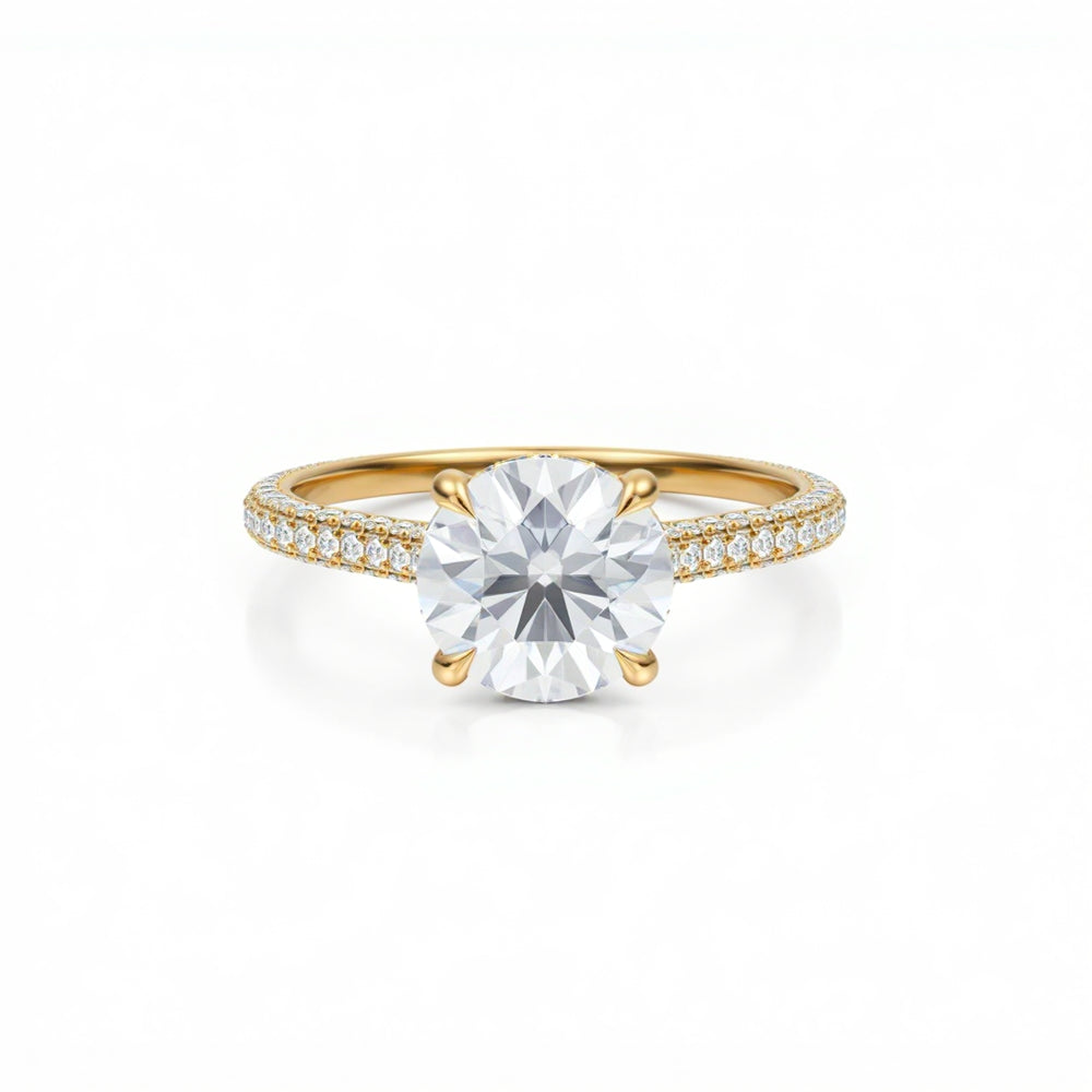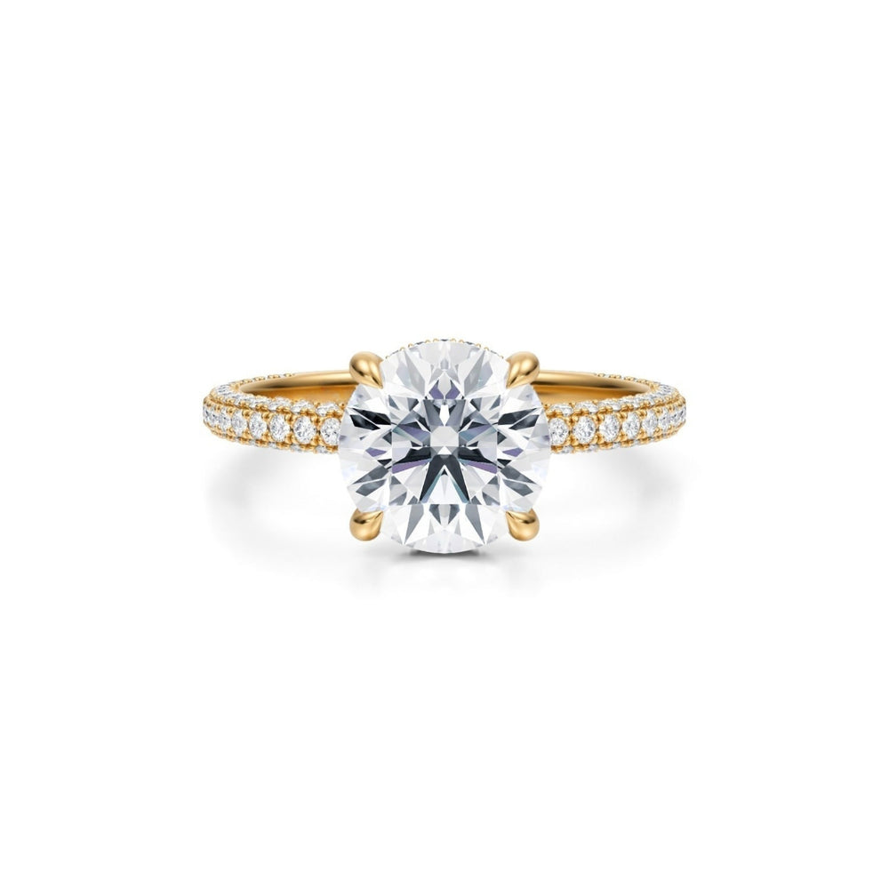 Discover classic solitaires, pavé-band rounds, cathedral shoulders, hidden halos, halos, and three-stone designs. Choose natural or lab-grown diamonds, your metal (18K yellow, white, rose gold or platinum), and band styles from delicate to sturdy for daily wear.