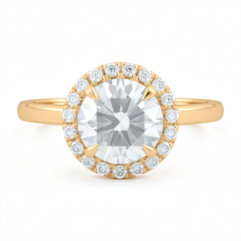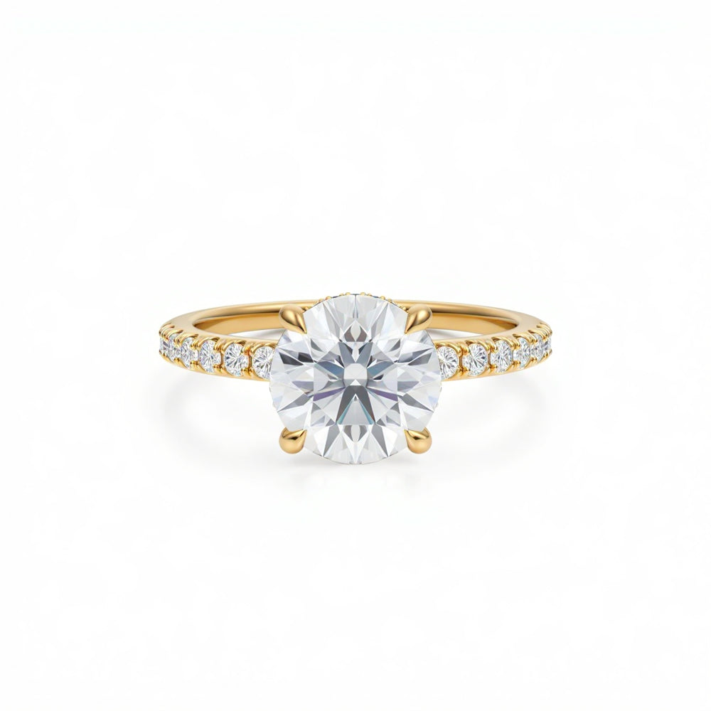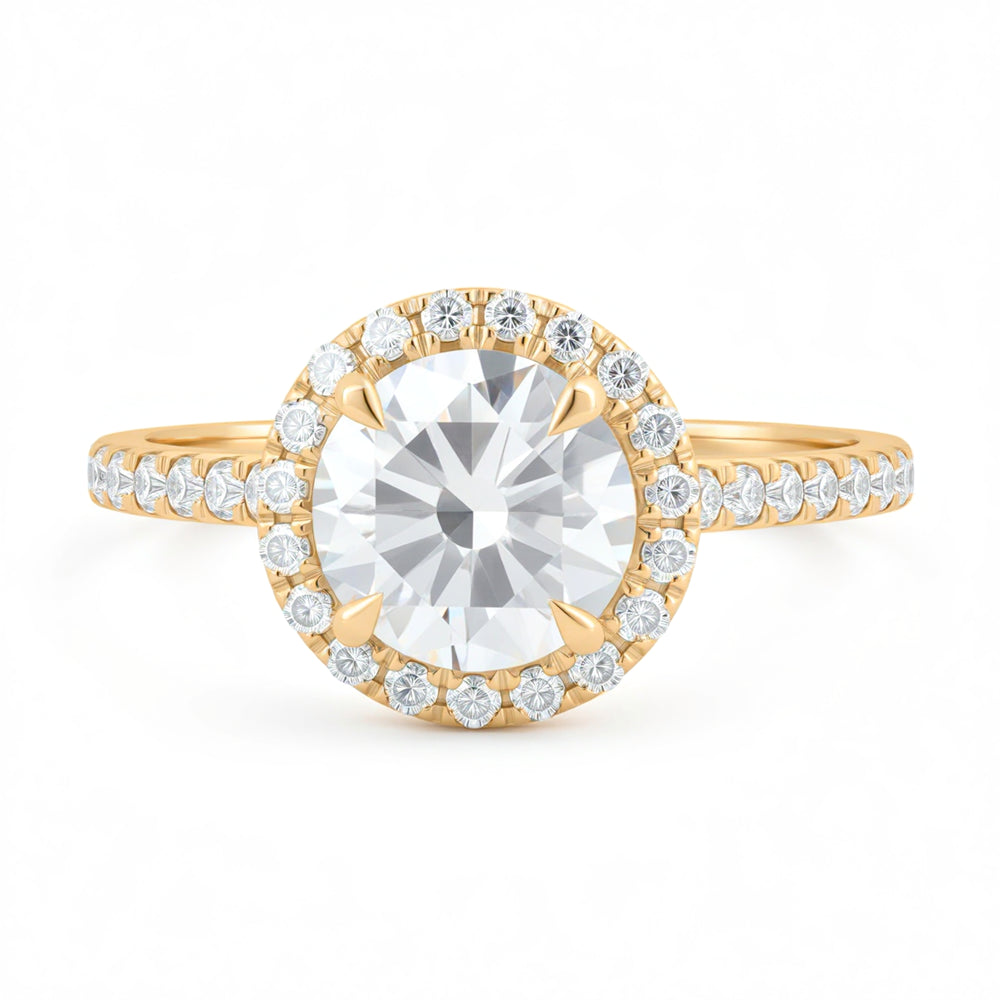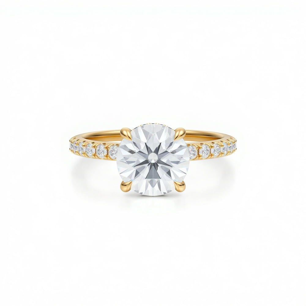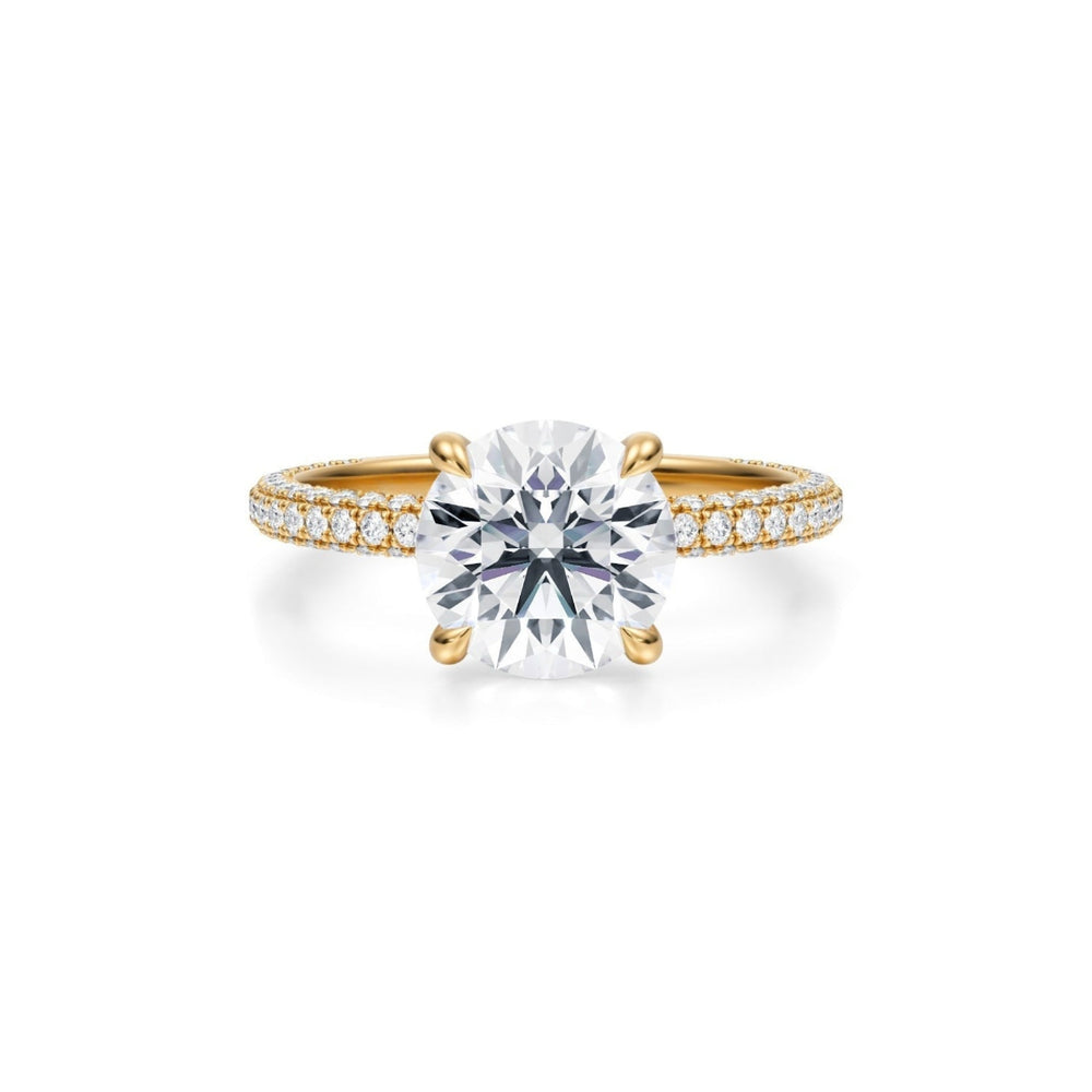 Discover classic solitaires, pavé-band rounds, cathedral shoulders, hidden halos, halos, and three-stone designs. Choose natural or lab-grown diamonds, your metal (18K yellow, white, rose gold or platinum), and band styles from delicate to sturdy for daily wear.